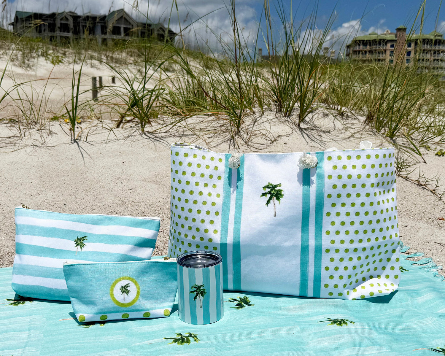 Each product in the Palm Tree Summer Curated Collection is designed with hand-painted palm tree motifs and beachy stripes that capture your laid-back coastal lifestyle.