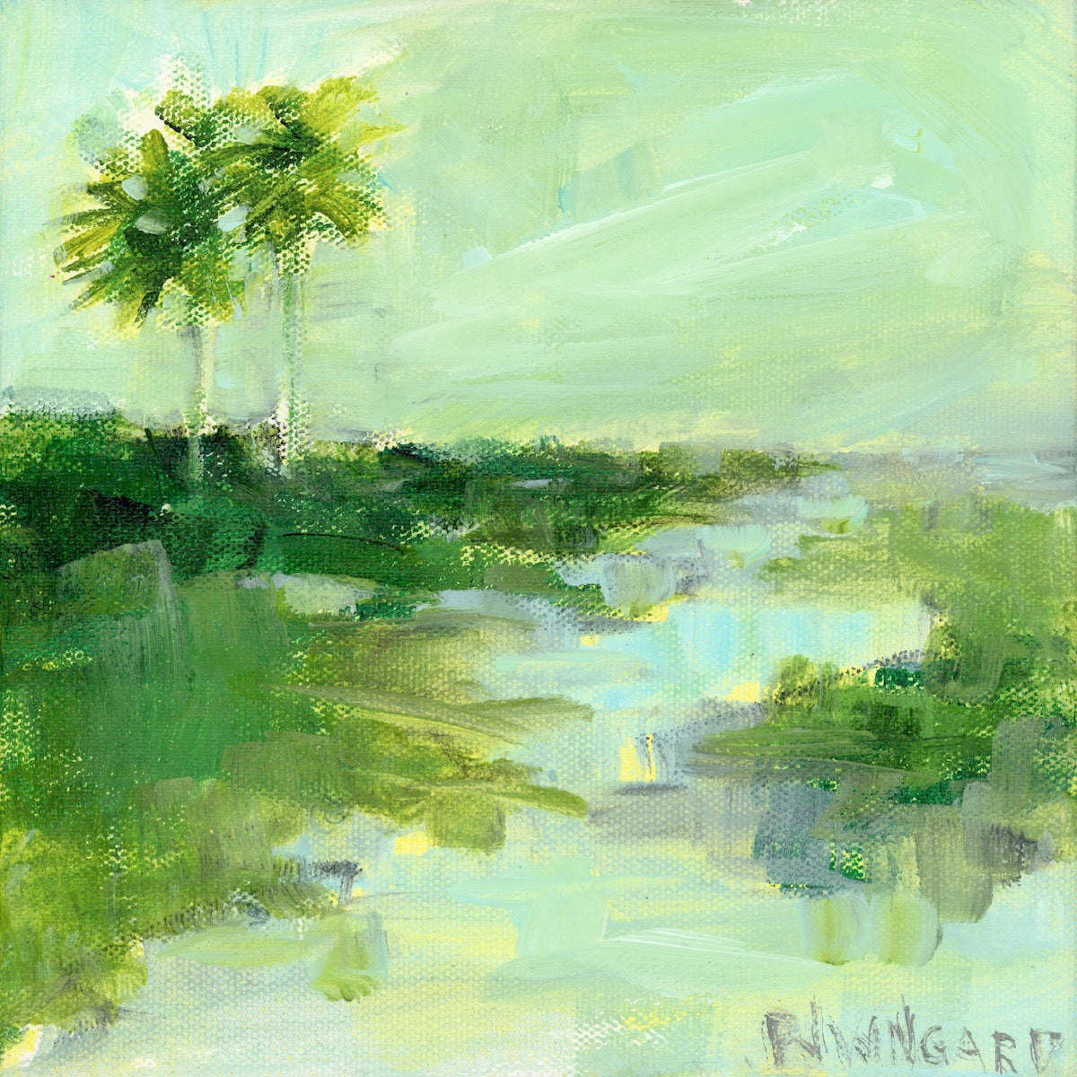 Abstract coastal painting by Pamela Wingard Fine Art. 8" x 8". Gallery depth canvas with side painted. Wired and ready to hang.
